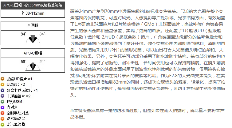 參數 [品牌] 佳能 [型號] EF 24-70mm f/2.8L II USM [毛重] 1.14KG [產地] 中國 [單位] 個